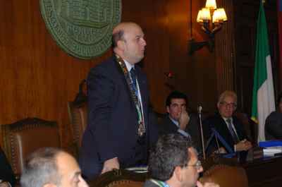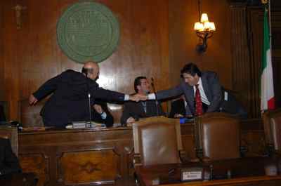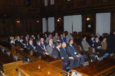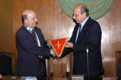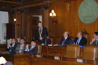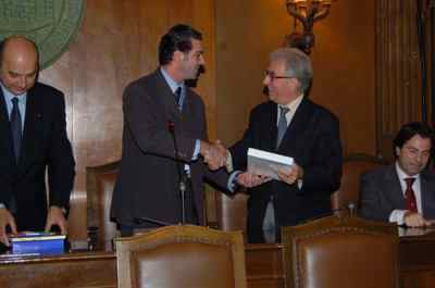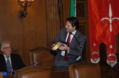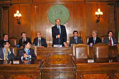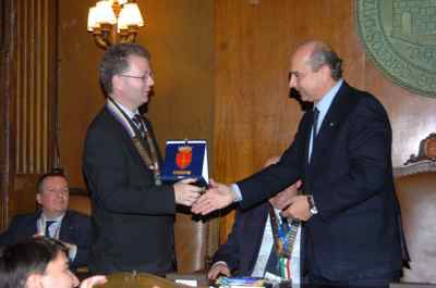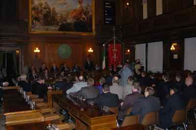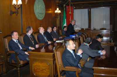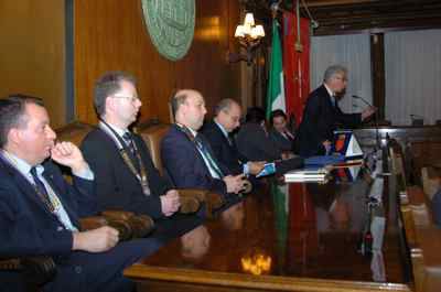 Il sindaco Roberto Dipiazza ed il Presidente del Consiglio comunale Bruno Sulli ed l'assessore comunale Maurizio Bucci con il presidente di Round Table Italia Maurizio Giudici e gli altri rappresentanti presenti al Meeting organizzato dalla Round Table Italiana in collaborazione con il Comune di Trieste, durante l'incontro avvenuto nella sala del Consiglio del Municipio.