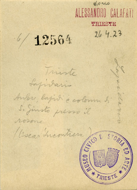 Proprietà Ente pubblico territoriale; Civici musei di Storia ed Arte; donazione; Calafati, Alessandro; 1923/04/26