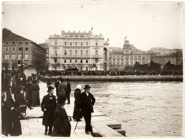 Folla in attesa delle truppe italiane : Molo san Carlo 2 novembre 1918