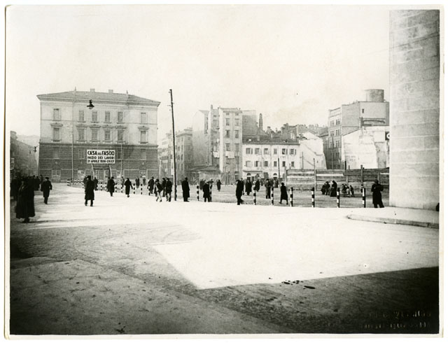 Area su cui verrà edificata la Casa del Fascio, prevista nel Piano Regolatore del 1934 per dare una sede appropriata alla direzione locale del Partito Nazionale Fascista. La costruzione dell'edificio, affacciato su Corso Littorio, rientrava nell'ambito del più ampio progetto di ristrutturazione urbanistica di Cittavecchia, comportante, tra l'altro, la messa in luce delle rovine del teatro romano e la demolizione di parte del ghetto ebraico./pIl concorso per la progettazione dell'edificio, indetto nello stesso 1934, vide vincitori gli architetti Raffaello Battigelli e Ferruccio Spangaro. La prima pietra fu posta da Mussolini durante la sua visita a Trieste il 18 settembre 1938, tuttavia il cantiere terminò solo qualche anno più tardi, nel 1942.