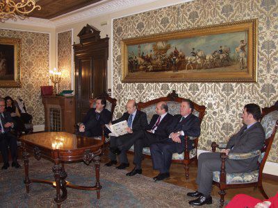 Il sindaco Roberto Dipiazza, l'assessore comunale Roberto Menia ed i dirigenti dell'Anci del Friuli Venezia Giulia , nel salotto azzurro del Municipio.