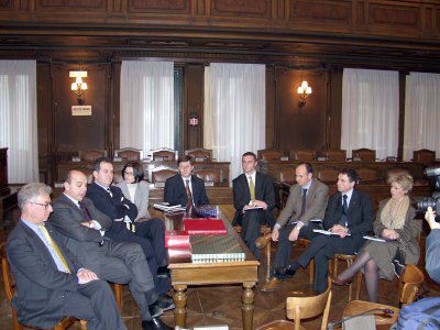 Il sindaco Roberto Dipiazza, Miomir Mugosa, Renzo Codarin ed il presidente del Consiglio Comunale Bruno Sulli