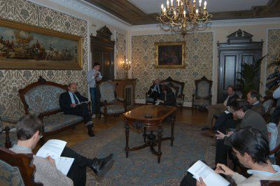 Il sindaco Roberto Dipiazza parla alla stampa nel salotto azzurro del Municipio