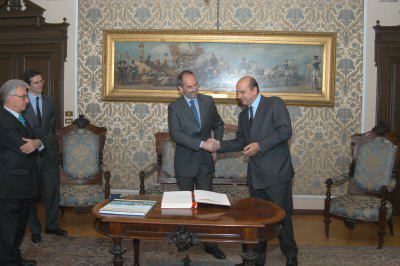 Il sindaco Roberto Dipiazza ed Alfons Kloß ambasciatore d'Austria durante l'incontro nel salotto azzurro del Municipio. Presente anche il presidente del Consiglio comunale Bruno Sulli
