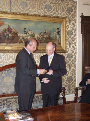 Il sindaco Roberto Dipiazza, l'assessore comunale Maurizio Bucci, il Console generale del Regno Unito Richard Northern, Roberto Galli addetto commerciale del Consolato ed il presidente del Consiglio Comunale Bruno Sulli, nel salotto azzurro del Municipio.