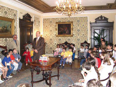 Il sindaco Roberto Dipiazza parla con gli scolari, assiste all'incontro il presidente del Consiglio Comunale Bruno Sulli