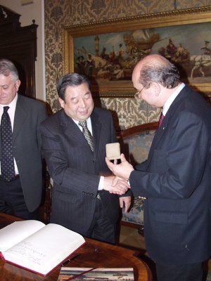 Il sindaco Roberto Dipiazza sindaco e l'assessore comunale Giorgio Rossi ed il presidente del Consiglio comunale Bruno Sulli incontrano l'ambasciatore cinese Chen Wen Dong, nel salotto azzurro del Municipio.