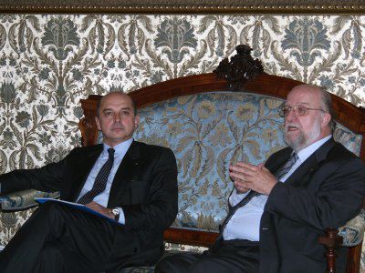 Il sindaco di Trieste Roberto Dipiazza con i rappresentanti del MIB nel salotto azzurro del Municipio.