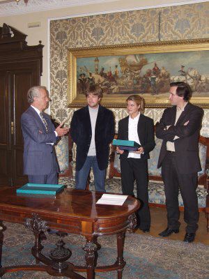 L'assessore comunale Roberto Menia ed il Presidente dell'Aiat di Trieste Franco bandelli con la neo campionessa mondiale Tanja Romano nel salotto azzurro del Municipio