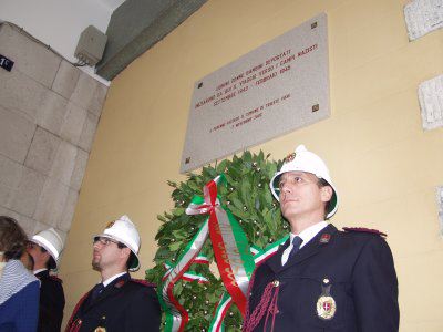 L'assessore comunale Renzo Codarin durante lo scoprimento della Targa alla memoria.
