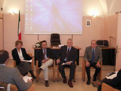 Gli assessori comunali Giorgio Rossi e Enrico Sbriglia durante la presentazione del Progetto nella Sala matrimoni del Municipio.