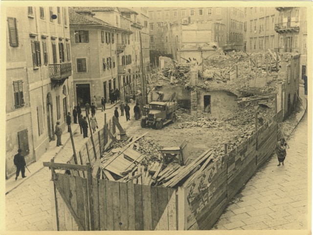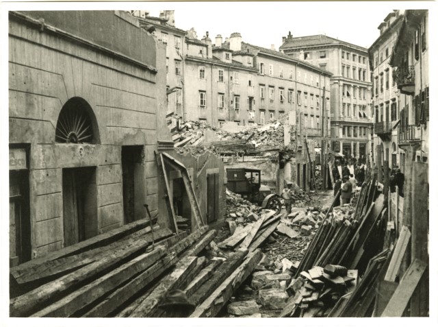 Le foto descrivono lo sventramento necessario per attuare la realizzazione delle attuali piazza Garibaldi, largo Barriera Vecchia, via Carducci e via Oriani.