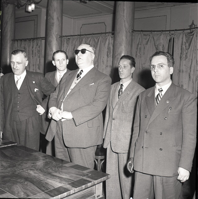 Celebrazione ufficiale il 19 marzo della Giornata nazionale del mutilato del lavoro al Ridotto del Verdi. Presente il grande invalido del lavoro, prof. avv. Filosi di Roma. Il prefetto Palutan, assistito dal direttore dell' INAIL dott. Benussi Gambel, distribuisce diplomi e distintivi agli invalidi e ai mutilati.