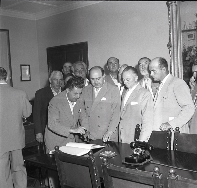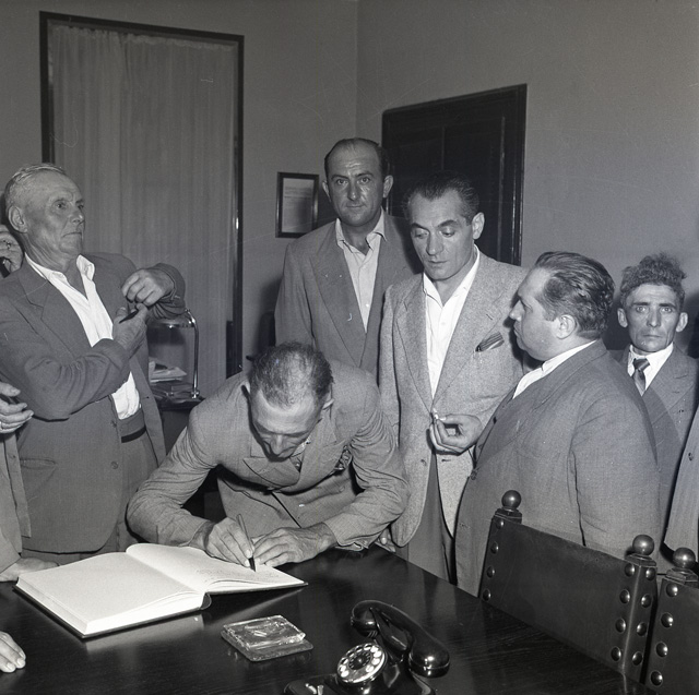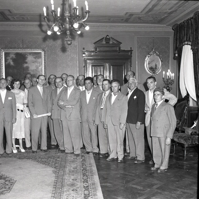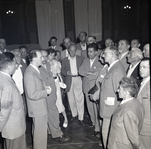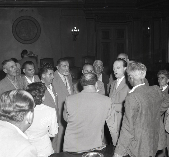 Un centinaio di coltivatori diretti provenienti da Ferrara, ospiti della Federazione provinciale Coltivatori diretti e del Consorzio agrario di Trieste, vengono ricevuti in Municipio.