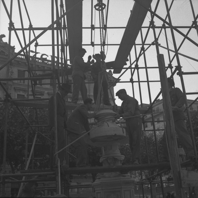 Ripristino della fontana, opera dell'architetto Giuseppe Bernardi e dello scultore Giovanni Depaul, dopo il restauro effettuato a cura di Nino Spagnoli.