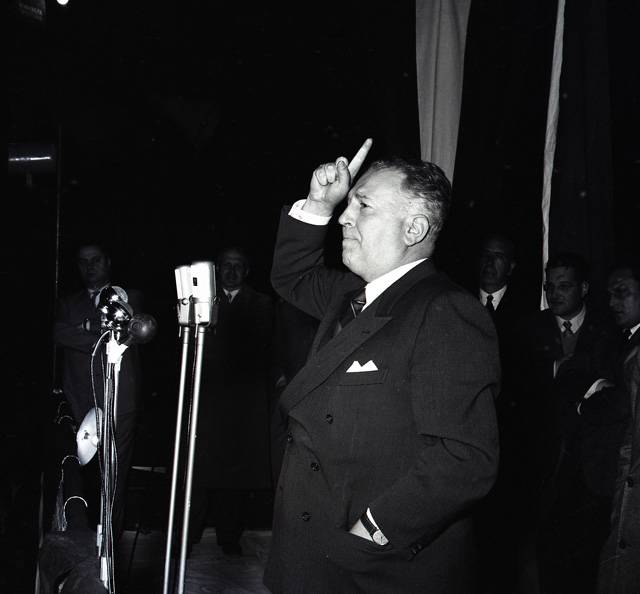 In vista delle elezioni del 25 maggio, si svolge un comizio con i partiti dell'apparentamento democratico: il Partito socialista della Venezia Giulia, con l'on. Zagari, il Partito repubblicano italiano, col ministro Pacciardi, il Partito liberale italiano, con l'on. Sanna Randaccio e la Democrazia Cristiana, col ministro Pella.