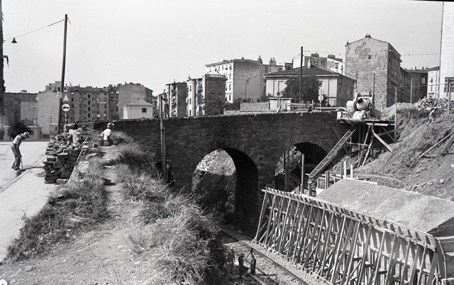 Ponte in costruzione in via Orlandini, nel rione di Ponziana