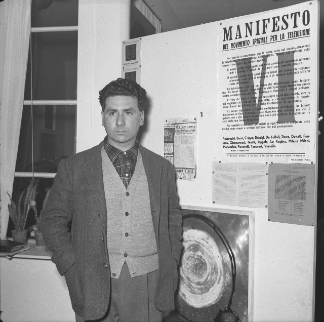 La mostra nazionale è riservata agli artisti spaziali Bacci, Burri, Capogrossi, Crippa, De Luigi, De Toffoli, Donati, Dova, Fontana, Giancarozzi, GUidi, Joppolo, La Regina Matta, Morandi, Peverelli, Tancredi, Vinicio. Alcuni partecipano all'inaugurazione. Un fotogramma riproduce anche il Manifesto del Movimento Spaziale per la televisione, ultimo dei manifesti dello spazialismo, distribuito la prima volta durante una trasmissione sperimentale di RAI-TV di Milano il 17 maggio 1952.