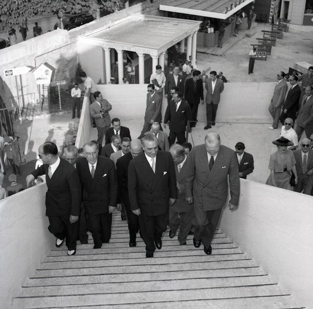 Inaugurazione della 4. Fiera campionaria internazionale di Trieste. A presenziare la cerimonia il ministro dell'industria e commercio Pietro Campilli, il generale Winterton, il sindaco Bartoli e il presidente dell'Ente Sospisio