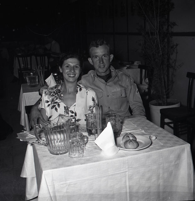 Fiera di Trieste, 1952 : Coppia e gruppo di amici a tavola