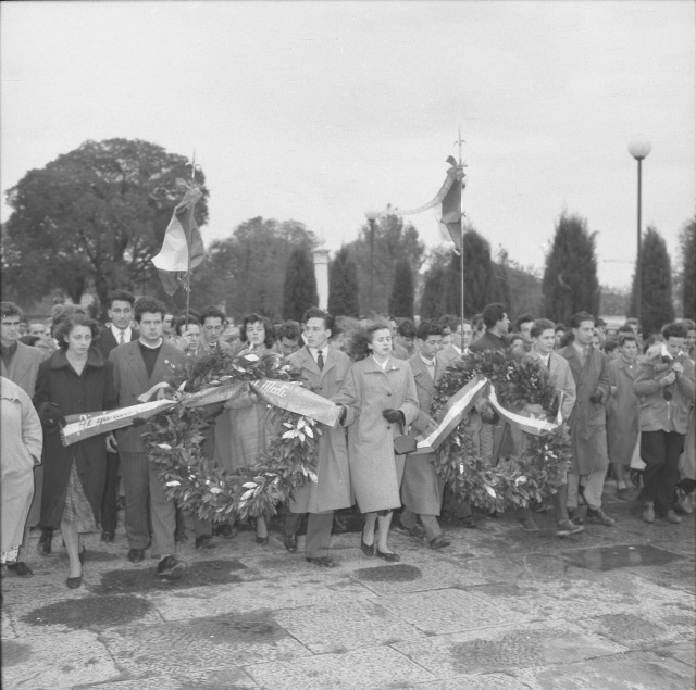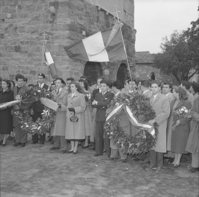 Il vescovo Santin benedice il labaro del Circolo studenti medi e quello del Movimento amicizie giovanili, al suo secondo anno di attivita. Madrina della manifestazione Marisa Bartoli, figlia del Sindaco