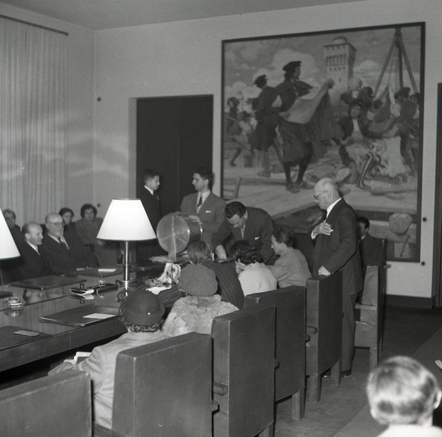 Inaugurazione del Teatro Nuovo, ex Auditorium di via Giustiniano, sede della Compagnia del Teatro stabile di prosa, con la prima rappresentazione de La donna di garbo di C. Goldoni (da: Il Piccolo, 21 e 24 dicembre 1954). Varie riprese dei locali interni, la sala e il palcoscenico, il buffet, la parete con il grande pannello ideato dall'artista locale Federico Righi, la compagnia durante alcuni momenti delle prove.Laura Solari è la protagonista de "La donna di garbo" di Carlo Goldoni