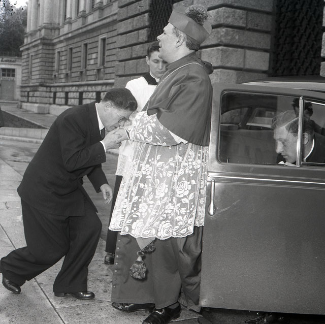 Il vescovo Santin benedice i partecipanti al raduno di Muggia Vecchia.