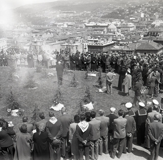 Riprese della cerimonia a San Giusto in occasione dello scoprimento dei cippi commemorativi dei caduti in guerra.