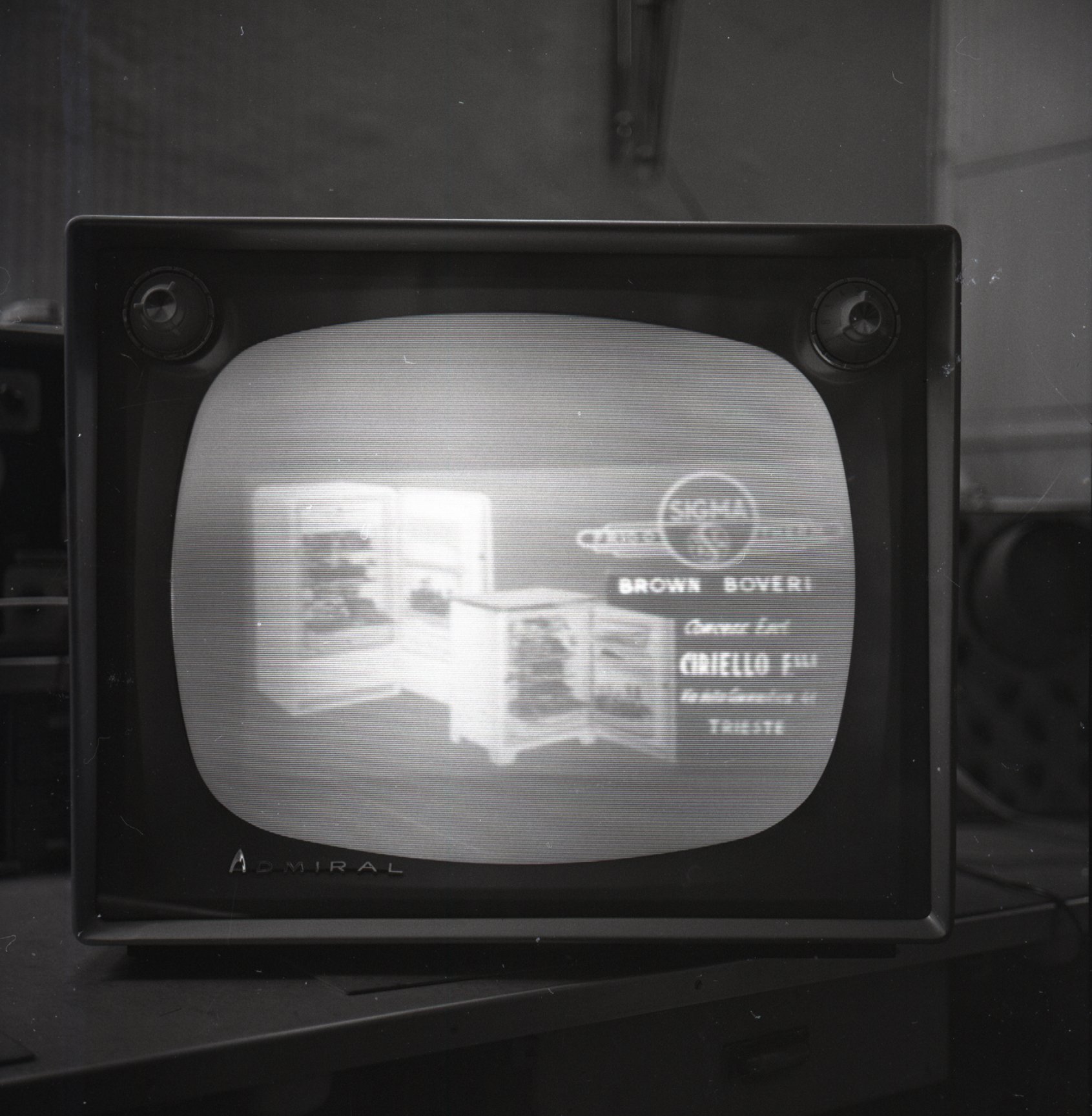 Schermo TV con monoscopio e pubblicità ITMAR