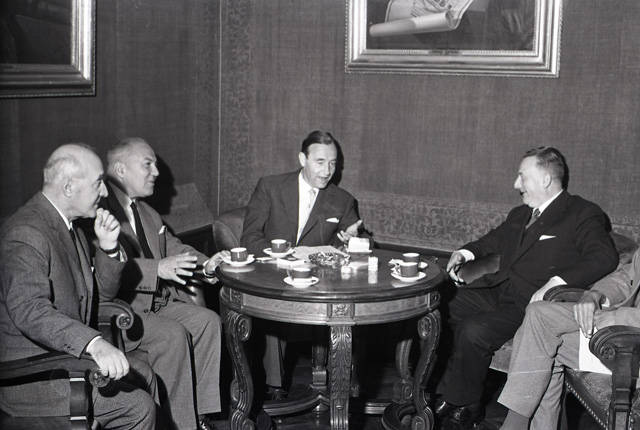 L'ambasciatore Klaiber arriva in città con la nave Saturnia. Accompagnato dal presidente della Camera di commercio Caidassi e dal presidente dell'Ente Fiera Suttora, Klaiber incontra alcuni dei maggiori esponenti della vita economica cittadina. Tratto da Il Piccolo sera del 22.09.1962