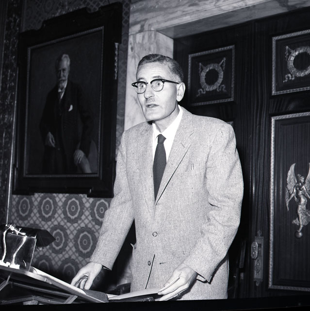 Il prof. Halden B. Hanson con una lezione dal titolo "Steinbeck vent'anni dopo" previo discorso del direttore generale della compagnia Dario Zaffiropulo, ha inaugurato alla RAS il quinto ciclo di conferenze in lingue straniere. L'iniziativa è resa possibile grazie all'entusiasmo del prof. Pierpaolo Luzzato Fegiz dell'Istituto di lingue moderne dell'Università, una realtà sempre più importante anche a livello internazionale. Tratto da Il Piccolo 06.12.59