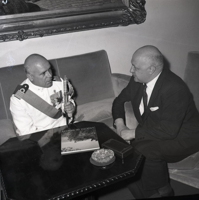 Il comandante dell'incrociatore Montecuccoli, gioiello della Marina Militare Italiana, capitano di vascello Mario Baroglio, si è recato in visita di cortesia alle maggiori autorità cittadine. Ha avuto modo di incontrare il commissario generale del Governo Palamara, il vescovo Santin, il Sindaco Franzil ed il comandante del presidio militare Vismara, tutti a loro volta ospitati sull'incrociatore. Nel pomeriggio è stato offerto dal Comune un ricevimento al Castello di San Giusto in onore di ufficiali ed allievi del Montecuccoli. Notizie tratte da Piccolo sera 20.07.1960