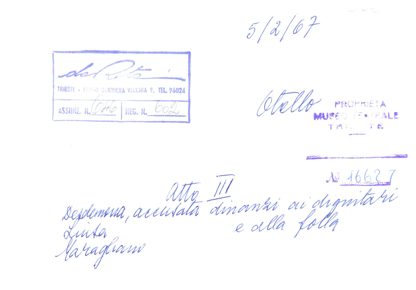 Otello, atto III, Luisa Maragliano nel ruolo di Disdemona davanti alla folla. Teatro Verdi, Trieste, 1967