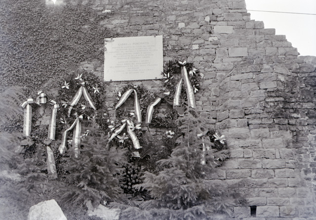 Depositate corone di fiori sulla targa a ricordo dell'irredentista mazziniano Gabriele Foschiatti, a nove anni dalla morte avvenuta il 20 novembre 1944 nel lager di Dachau