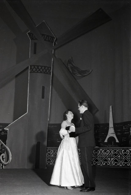Il tradizionale ballo benefico della Cavalchina, simbolo per eccellenza del Carnevale, organizzato dalla Croce Rossa Italiana al Teatro Verdi per raccogliere fondi, è ispirato quest'anno alla Parigi del Moulin Rouge. Notizie tratte da Il Giornale di Trieste, 01.03.1954