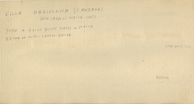 La villa venne costruita su progetto di Ruggero Berlam nel 1889. A commissionarla fu Giorgio Haggiconsta, un ricco possidente di origine greco-russa marito di Elena di Demetrio, proprietaria del fondo. Alla morte dei proprietari, l'edificio fu acquistato da un cittadino italiano che lo cedette al Comune di Trieste. A partire dal settembre 1924 fu sede dell'Istituto femminile di coltura e proponeva corsi liberi rivolti a un pubblico femminile di "lingua e letteratura italiana, francese, tedesca, inglese, storia della cultura e dell'arte, lavori femminili ed artistici, disegno, pittura, pittura, modellatura, incisione, corso pratico di batik, musica, ginnastica svedese ed armonico ritmica, danza classica". La foto ritrae, tra le altre, Fulvia, madre del donatore e la sorella Bruna Stoelker. Negli anni Trenta fu donata all'Opera Nazionale Balilla, affinché la destinasse a "Casa della Giovane Italiana" e, di conseguenza, vennero eseguiti dei lavori di adattamento, in particolare ai fabbricati di servizio. Tra il 1962 e il 1968 la villa venne utilizzata dall'Opera di assistenza ai profughi giuliani e dalmati, mentre nel 1972 la proprietà della struttura passò alla Regione che, dopo i restauri seguiti dall'ingegner Pietro Cvitanich, la destinò ad accogliere un centro di educazione motoria. Il complesso della villa comprendeva in origine, oltre all'edificio padronale, la scuderia, una rimessa, la lavanderia, le serre e un giardino all'inglese, il tutto progettato da Berlam. L'edificio principale, in stile eclettico con rimandi all'architettura italiana del Cinquecento, presenta una pianta ed una composizione dei volumi mosse ed asimmetriche ma equilibrate nell'insieme. Sul lato principale si distinguono tre corpi in altezza decrescente con una torretta che domina il complesso.