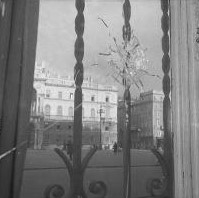 Fori e tracce dei proiettili sparati dalla polizia inglese durante gli scontri del 5 e 6 novembre 1953, sul colonnato della chiesa di Sant'Antonio e in piazza Unita' d'Italia.
