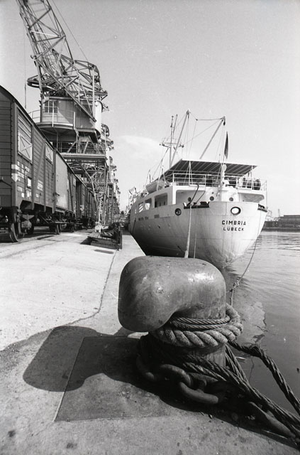La nave da carico Cimbria Lubeck giunge a Trieste con un carico di legname segato Douglas.