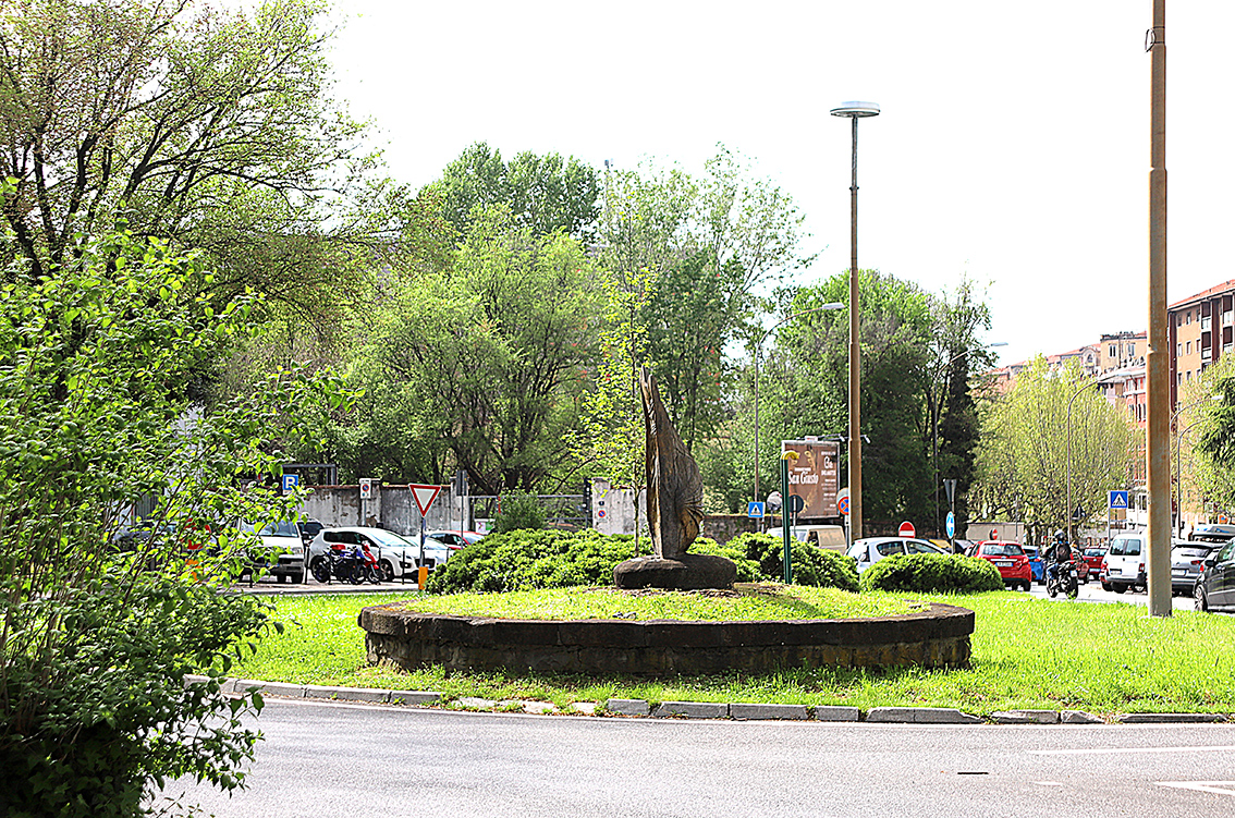 Scultura creata dal legno di un platano secolare che si trovava al medesimo posto ed abbattuto perchè pericolante.