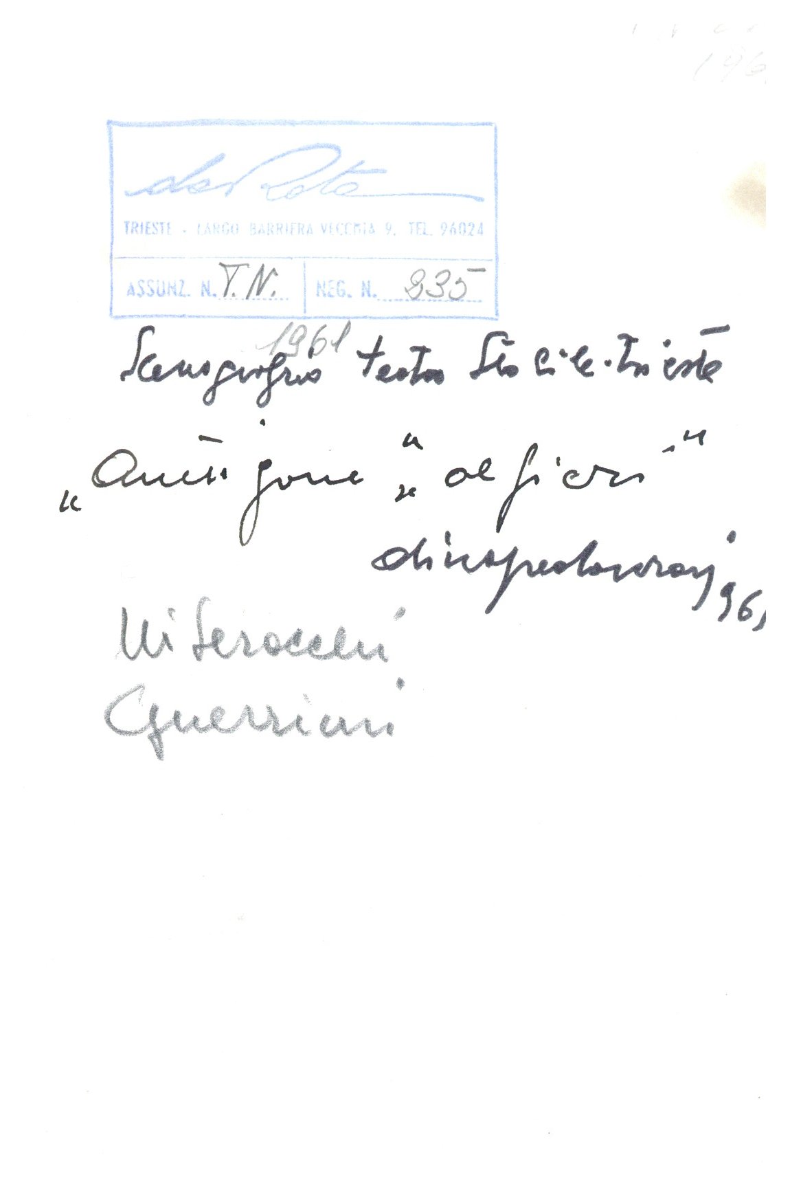 Alfieri, Vittorio . Antigone - Rappresentazioni - Teatro Nuovo <Trieste> - 1961