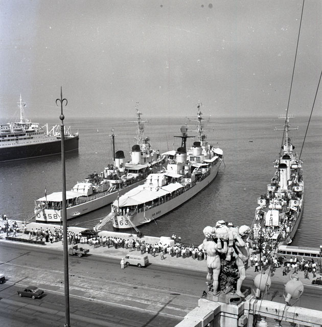Navi da guerra italiane in bacino S. Giusto; Vulcania e panoramica rive