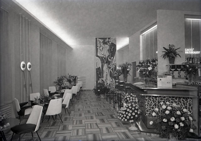 Il bar, danneggiato negli ultimi giorni di guerra, era stato requisito dall'amministrazione militare alleata. Riapre con una nuova sistemazione degli ambienti curata dall'ing. Enzo Fioretto e un arredamento basato sui disegni originali di Angelo Rojatti.