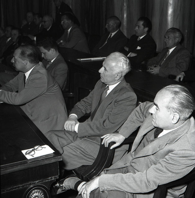 Alla presenza di Alighiero De Micheli, presidente nazionale della Confindustria, l'Associazione degli industriali della Provincia di Trieste si riunisce per la prima volta dopo il ritorno di Trieste all'Italia. Il presidente Doria delinea la difficile situazione in cui versa il capoluogo giuliano. Tra i presenti: il direttore dell'assocazione, avv. Albanese, comm. Frandoli, ing. Pacchiarini, ing. Scarpa, comm. Wagner.