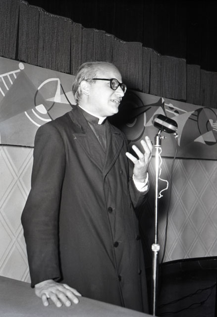 Don Lorenzo Bedeschi, redattore del giornale L'avvenire d'Italia, ex cappellano dei reparti italiani aggregati all'ottava Armata americana, svolge una conferenza sul tema "Chi ha un amore lo difende". Testo tratto da Il Giornale di Trieste, 3.10.1954