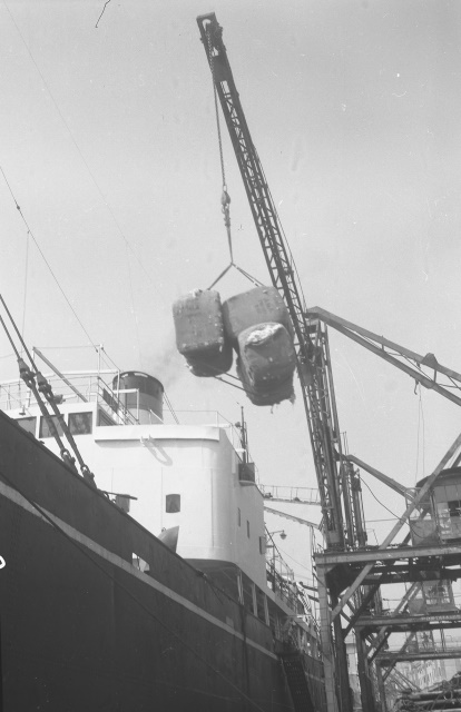 Sbarco di cotone UNRRA (United Nations Relief and Rehabilitation Administration) nel porto di Trieste