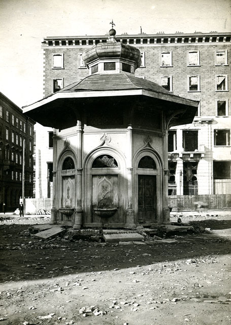 Piazza Oberdan, Fontanone e Hotel Balkan dopo l'incendio