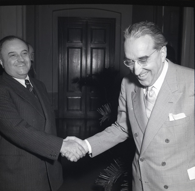 L'onorevole Achille Marazza, ministro del Lavoro e della Previdenza sociale, viene ricevuto dal sindaco Bartoli in Municipio, visita i malati, incontra il vescovo Santin, si reca a San Giusto e presenzia alla cerimonia della posa della prima pietra della nuova sede dell'Inam di Trieste.