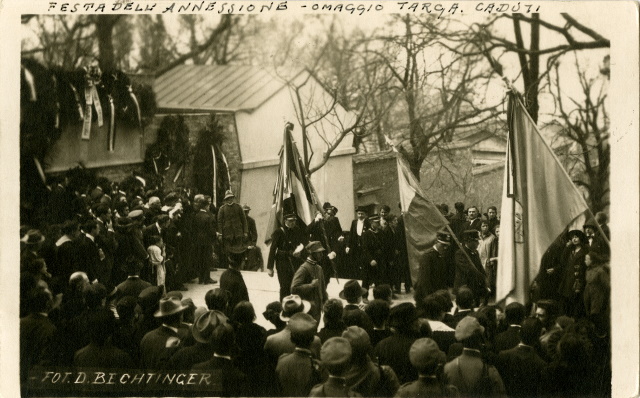 Omaggio delle autorità alla targa ai caduti in occasione delle celebrazioni per l'annessione di Trieste all'Italia.