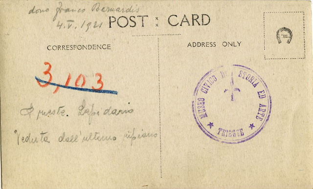 Veduta dal ripiano superiore dell'Orto lapidario del Museo di Storia ed Arte di Trieste. Sullo sfondo il tempietto neoclassico che contiene il cenotafio di J.J. Winckelmann.