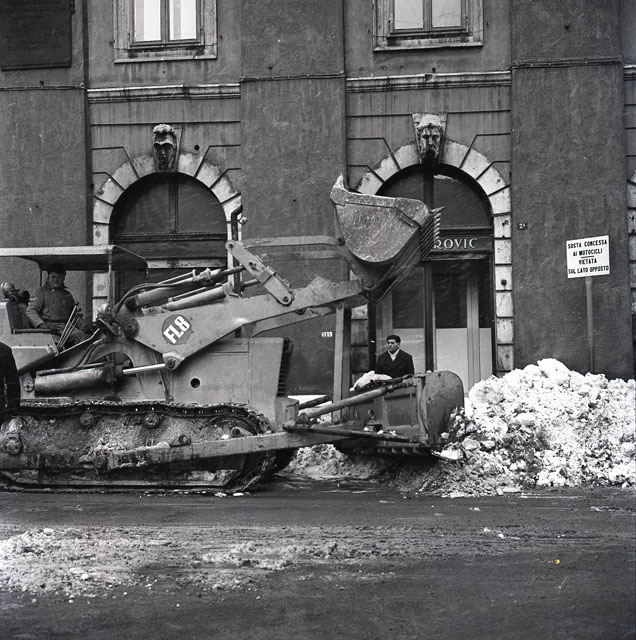 Neve : Venderigole di Ponterosso con ragazzi che giocano e spazzaneve in piazza della Borsa